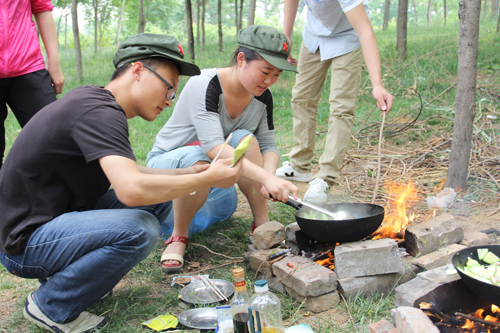 一路上,大家感受着红军的革命精神,面对烈日炙烤和路途劳累,两路“红军”没有退缩喊累,高举党旗,高唱红歌,用心感受着红军先烈艰苦奋斗的优良作风和不畏艰险、勇于向前的革命英雄主义精神。达到营地后。各位“红军”发挥自己的特长,在简陋的条件下搭灶、捡柴火、洗菜、切菜、烧菜等有序进行。尽管“红军”被滚滚浓烟呛的剧烈咳嗽、双手沾满泥土,大汗淋漓,但当一道道菜出锅时,每位“红军”都为自己的劳动而自豪。活动过程中,学生党员深刻体会到了红军过往生活的不易,也体会到了生存技能的重要性和“打铁还需自身硬”的深刻内涵。在现实条件相对优越的当下,学生党员表示要在日后进一步增强勤俭意识和加强实务技能的掌握。