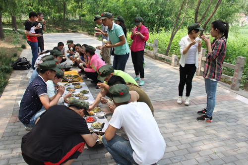 为铭记历史伟业,激发学生党员的爱国热情,继承和发扬革命光荣传统,所有党员分成“红一方面军”和“红二方面军”两支队伍,背着锅瓦瓢盆等徒步行走5公里,从学校出发到孝妇河安寨扎营,并需要在简陋的条件下完成“红军”搭灶、烧饭等工作,所有“红军”必须就地寻找砖头和柴火,并利用有限的餐具和食材保证每位“红军”能吃上饭。
