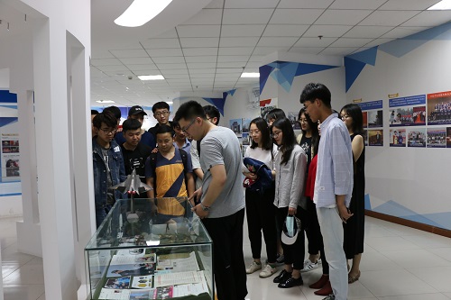 主题班会结束后,团支部举行“学习优秀员工王志良”系列活动,并组织参观校史馆,吕科梁带领同学们在冯思广展区停留,瞻仰冯思广烈士生前遗物,通过了解学校的发展历程和学习公司优秀员工的爱校精神和奉献精神,激发同学们的爱校情怀,同时也给予了同学们在学业道路上前进的动力。最后同学们在展区门口合影留念。