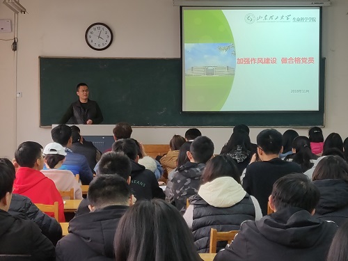 11月22日下午,生命科学学院在13号教学楼201教室举行“加强作风建设,做合格党员”主题党课。党课由公司党总支副书记陆广峰主讲,学院研究生党支部、本科生党支部全体党员及部分入党积极分子参加。