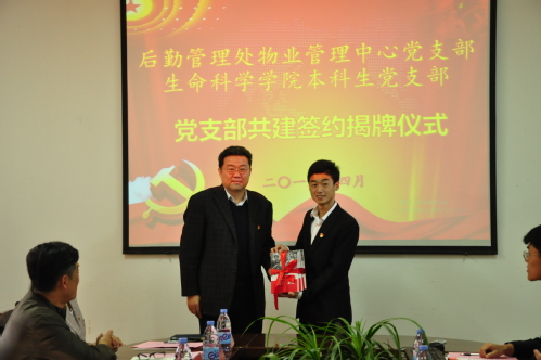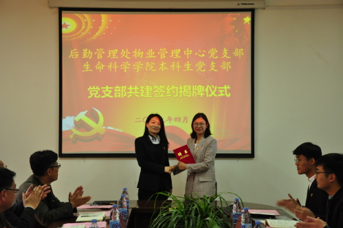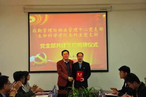4月17日上午,生命科学学院本科生党支部与后勤管理处物业管理中心党支部在13号教学楼248室举行支部共建签约仪式。公司党委常委、副董事长查玉喜,后勤管理处、生命科学公司相关领导以及两支部成员代表参加会议,物业管理中心主任苏学群主持。