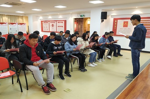 在工作人员的陪同解说下,全体党员重点参观学习党群服务中心的组织生活规范化活动中心,中心围绕“找初心、强认识、明标准、学方法、作评议、查不足、作整改、促提升”八个方面进行了精心布置。回顾党的发展历程,重温入党誓词环节帮助全体党员回顾并牢记入党初心;正反面案例对照,强化了党员对开展组织生活重要性的认识;学习组织生活基本制度、基本要求,学习张店区抓实组织生活十项制度,帮助学生党员更好地掌握组织生活会的典型做法;对照组织生活要求,每一位党员同志对个人参加组织生活情况进行了查摆、自评、总结与反思。最后,全体党员郑重宣读组织生活承诺书并在承诺书上签字承诺。