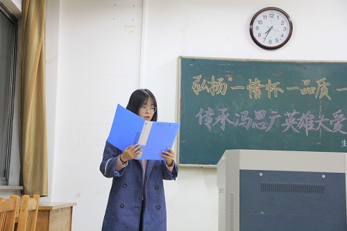 1111日晚,生命科学学院于13号教学楼201教室进行弘扬“一情怀、一品质、一精神传承冯思广英雄大爱主题班会,此次活动由2017级辅导员李超担任主持,冯思广班全体同学、冯思广精神研究会全体成员以及本科生全体党员共同参与。