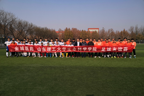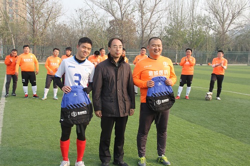 12月7日下午,生命科学学院与金城医药足球友谊赛在学校第一体育场顺利举行,学校副董事长易维明,金城医药副总经理崔希礼,学院副经理巴连良出席此次活动,生命科学学院师生代表及金城医药部分员工共同参加。