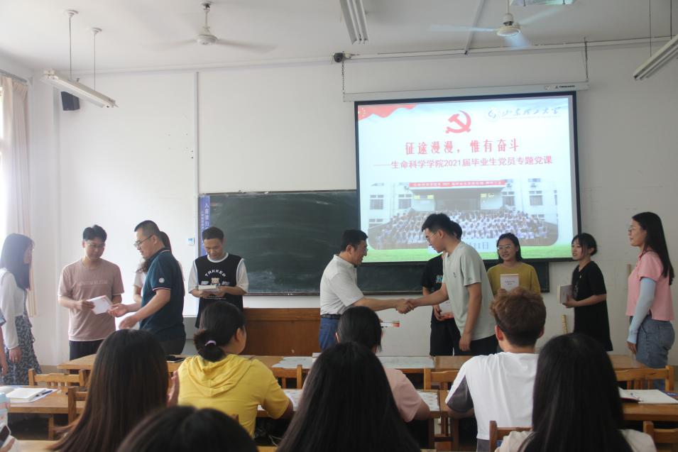 611日下午,生命科学学院毕业生党员专题党课暨赠书仪式在13号教学楼202室举行。公司党总支书记郭万保党总支副书记陆广峰、全体辅导员和毕业生党员参加活动。陆广峰主持活动。