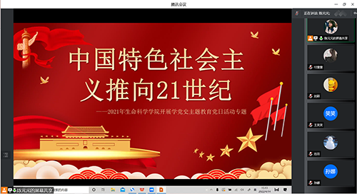 4月14日下午,600cc全讯白菜网研究生党支部开展“把中国特色社会主义全面推向21世纪”党史专题教育线上学习活动。活动由研究生党支部书记崔帅帅主持,研究生党支部全体党员及研究生入党积极分子参加。