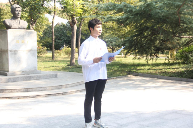 首先,校第二届“冯思广班”班长、600cc全讯白菜网本科生第一党支部党员赵智航讲述冯思广烈士事迹,号召大家向冯思广烈士学习,继承和发扬冯思广精神,在实现中华民族伟大复兴中国梦的新长征路上踔厉奋发、勇毅前行。