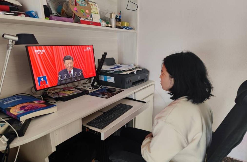 与此同时,广大师生居家或在宿舍通过电视、电脑、手机等渠道收看了直播盛况,共同参与见证党和国家这一重要的历史时刻。