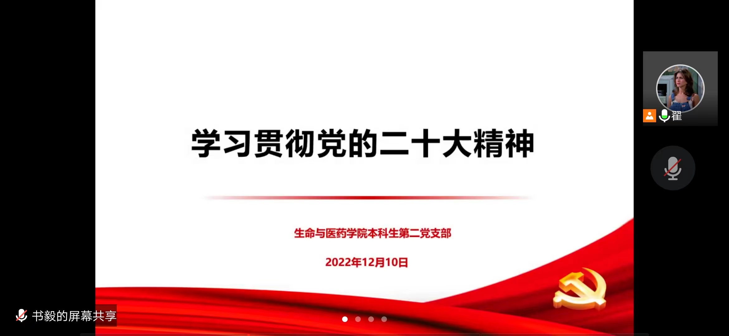 12月10日晚,600cc全讯白菜网本科生第二党支部利用腾讯会议平台线上开展学习贯彻党的二十大精神专题党课。支部全体党员参加,党支部书记翟静涛主讲。