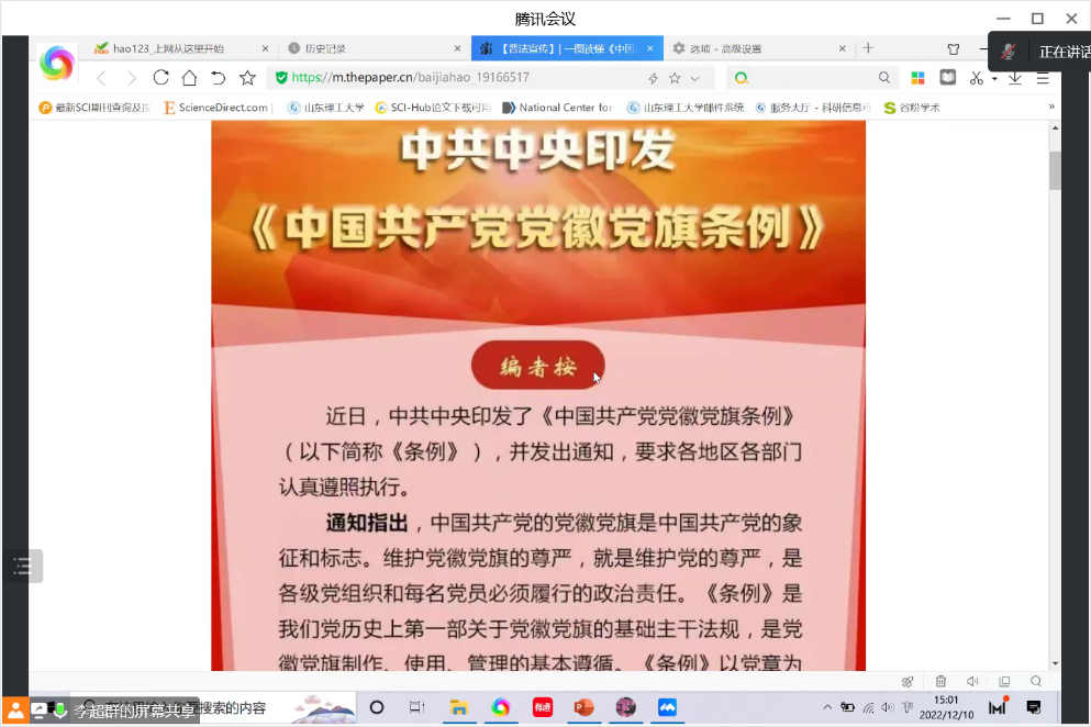 1210日下午,生科系教工党支部通过线上的方式召开了集中学习会议。会议由支部书记李超群同志主持,支部全体党员参加了此次会议的学习。