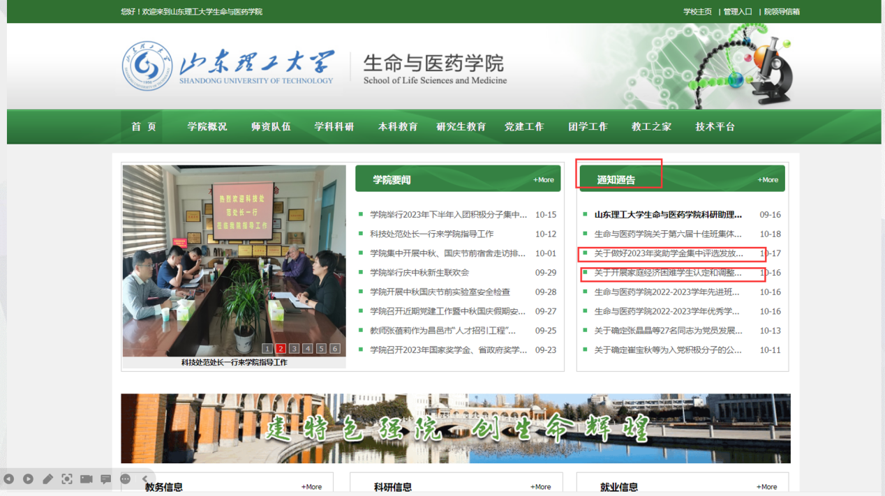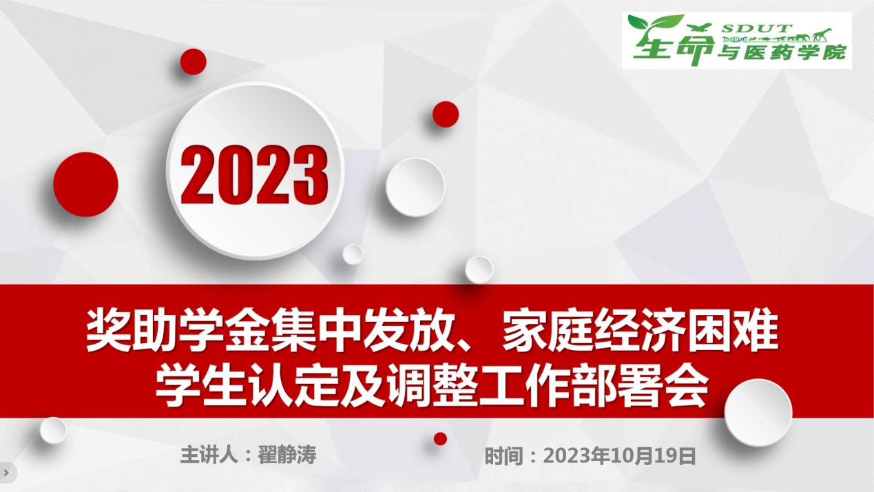 10月19日,学院围绕2023奖助学金集中评选发放及家庭经济困难学生调整认定事宜,在线上召开面向2022级学生的政策解读和工作部署会。2022级全体学生参加。会议由辅导员翟静涛主持。