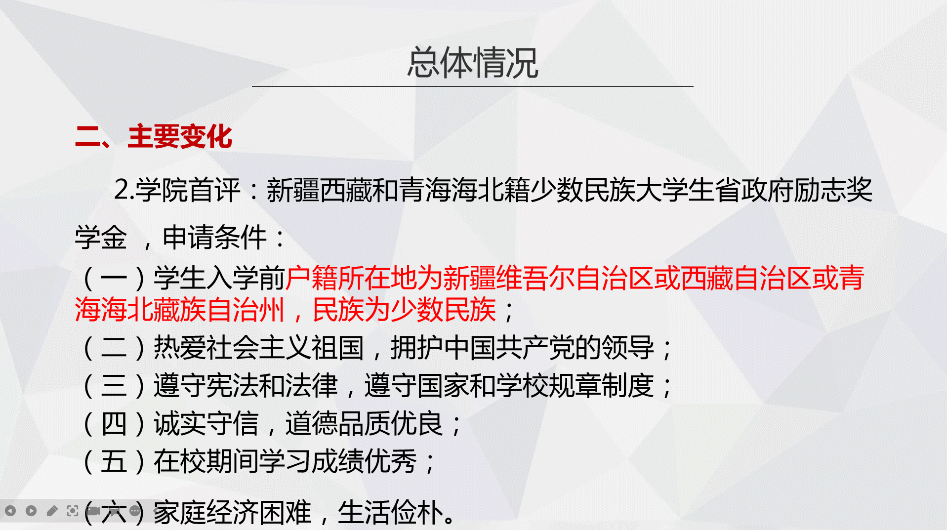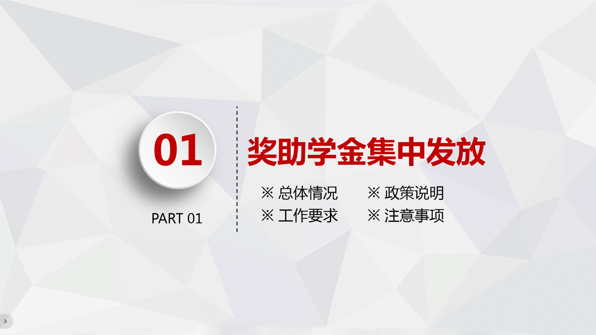 会上,翟静涛介绍了会议召开目的、主要内容及注意事项,结合工作通知要求及《学生手册》相关内容,介绍宣传了面向全体在校学生的有关资助政策,通报了具体工作安排,就工作程序、申报方式、反馈渠道等事宜做了解读与强调,对按时提交申报材料做了提醒。翟静涛指出,奖助学金评选发放及家庭经济困难学生的调整认定是一项政策性很强且关乎全体学生切身利益的工作,要求各班级在落实有关材料提报、评议小组组建等环节时,必须严格按照有关程序、要求组织实施,切实本着公平、公正、公开的原则,把好事办好。