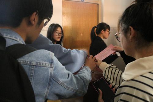 活动开始前,各班负责人预先做好准备,学生代表早早准备到位,工作人员有条不紊,分发投票纸和笔,并详细热心地回答到场人员的问题,进行了良好的引导工作,促使工作顺利展开进行。