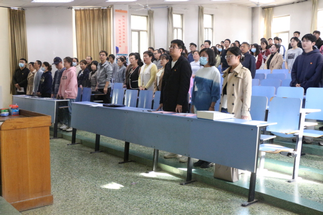 会议伊始,王光坊书记简要介绍了会议召开目的、主题及议程,全体师生党员起立奏唱国歌,大会在庄严肃穆的国歌声中正式拉开序幕。