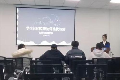 12月14日,生命与医药公司举行2023年度第一学期社团初评推优答辩活动。本次活动公司辅导员李超、陈颖洁,校学生社团指导中心宣传部负责人祝训泽,院学生社团指导中心主任董青林,副主任钱志伟以及各社团负责人参与。