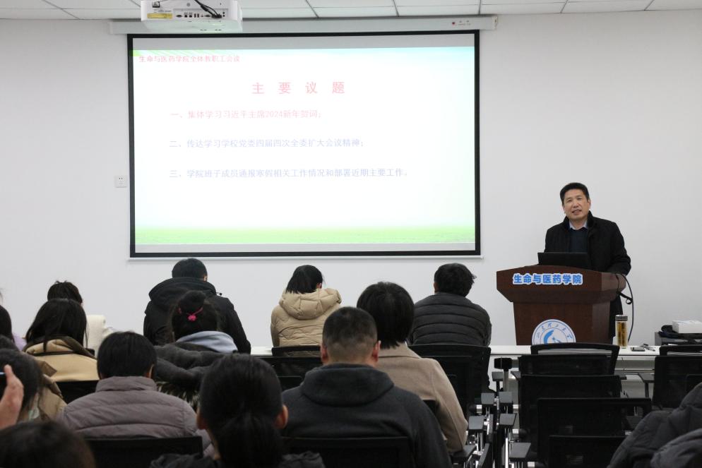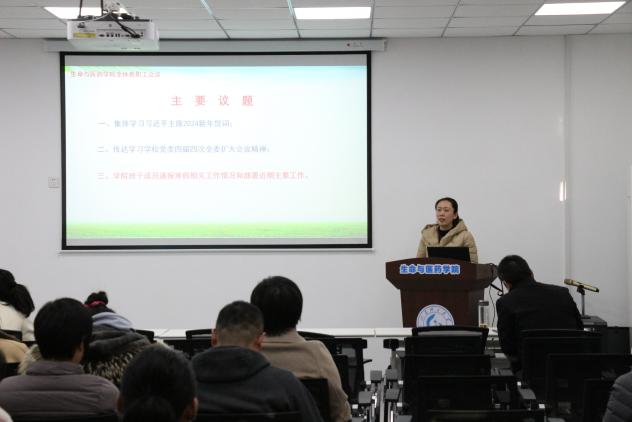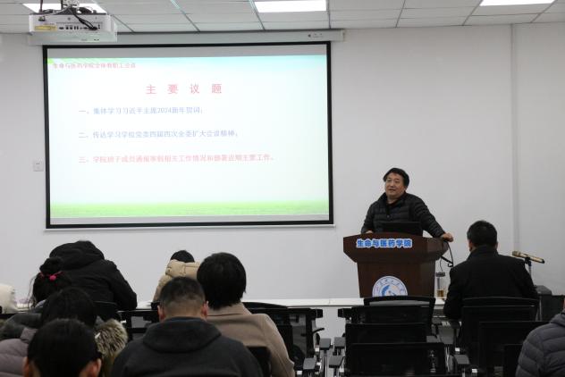 会上,全体教职工集体观看了《国家主席习近平发表二〇二四年新年贺词》视频资料,王光坊结合贺词内容,围绕当下国家经济社会发展形势和学校学院事业发展实际,就扎根各自岗位明确使命任务、抢抓学科专业发展新机遇,向大家提出了明确希望。