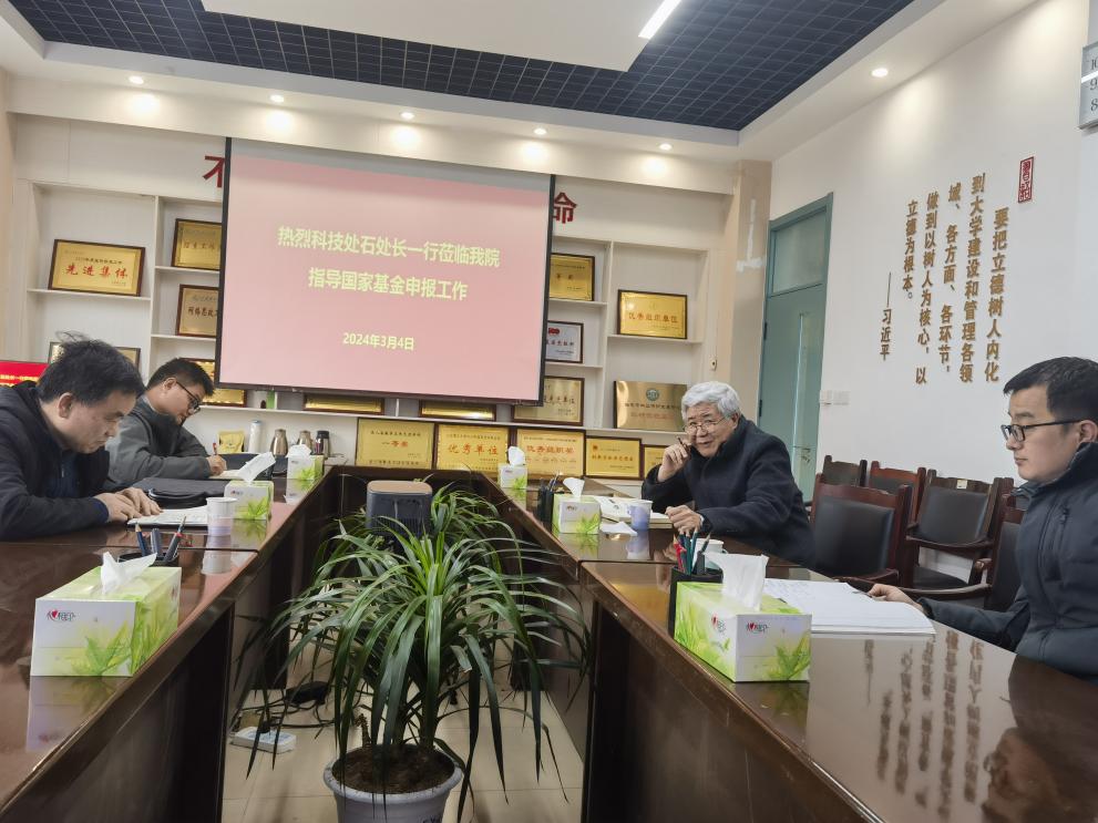 3月4日下午,科学技术处副处长石文峰,成果信息科科长彭帅星一行来学院指导2024年国家基金申报工作。600cc全讯白菜网经理杨凤堂、副经理邓洪宽、研究生与科研工作办公室主任冯玲参加本次工作座谈会。